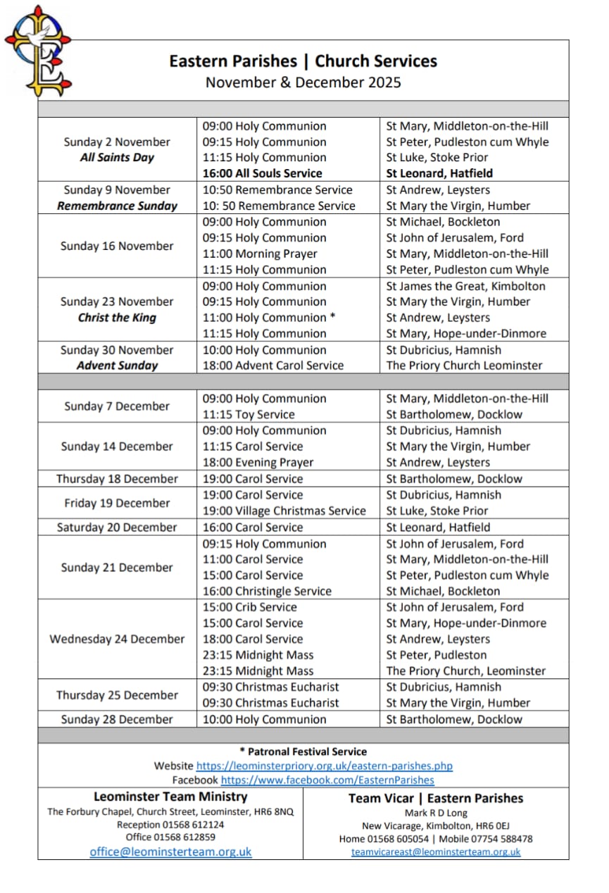 Rev. Mark Long is Team Vicar for the Eastern Parishes teamvicareast@leominsterteam.org.uk